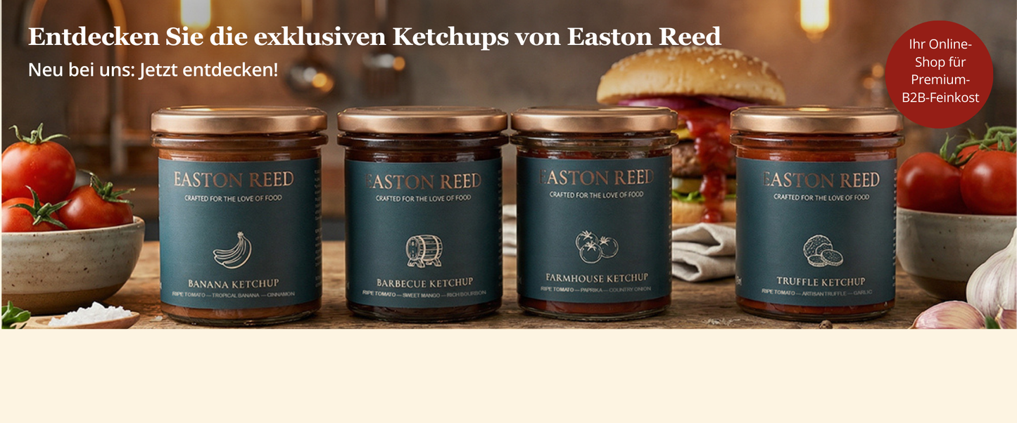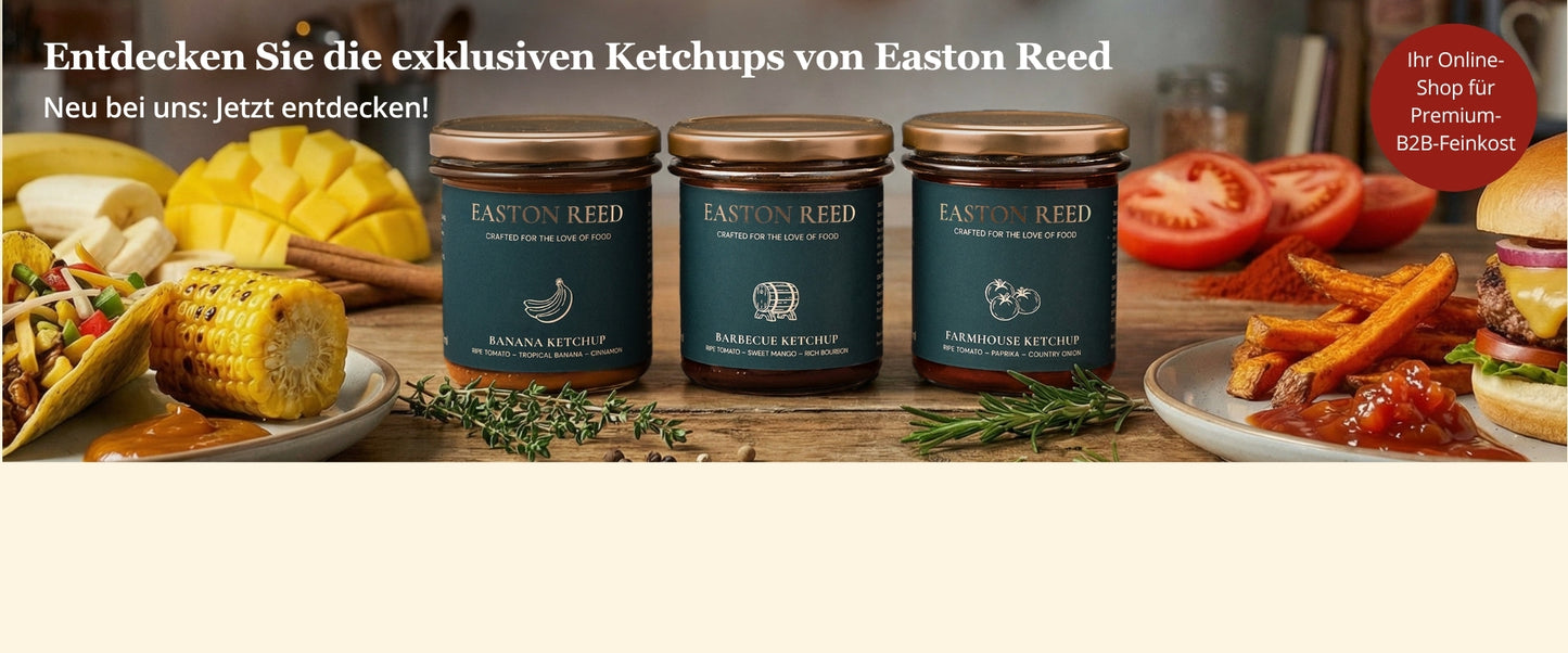 Unser Sortiment deckt alle B2B-Bedürfnisse ab: Saucen & BBQ, Aioli & Dips, Gourmet Snacks, Feinkost für Gastronomie & Hotels, Online-Bestellungen B2B, Delikatessen für Concept Stores, Bio & vegane Produkte, amerikanische Spezialitäten, indische Curry Saucen, BBQ Rubs & Gewürze, Marmeladen & Chutneys, Kaffeealternativen & Zero-Coffee, Ahornsirup, Duftkerzen & Home Fragrance, Geschenksets und Premium Delikatessen.