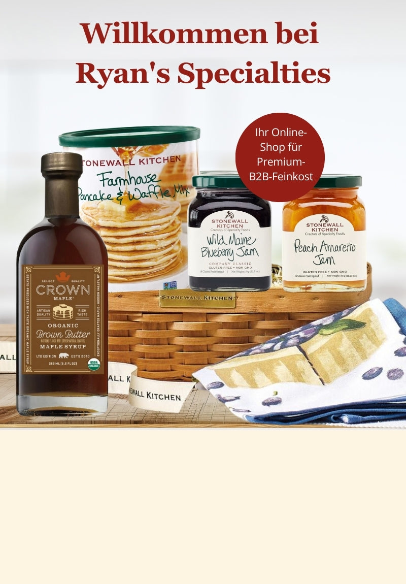 Besonders gefragt sind bei unseren B2B-Kunden in Deutschland und der EU internationale Marken und Premium-Labels wie American Heritage, Blanco Niño, Bravado Spice Co, Everly Grace, Crown Maple, Stonewall Kitchen und viele weitere. Mit Ryan’s Specialties erhalten Restaurants, Hotels, Concept Stores, Feinkostgeschäfte und Gastronomiepartner hochwertige Gourmetartikel direkt für ihre Betriebe – zuverlässig, exklusiv und auf die Bedürfnisse von Geschäftskunden zugeschnitten.